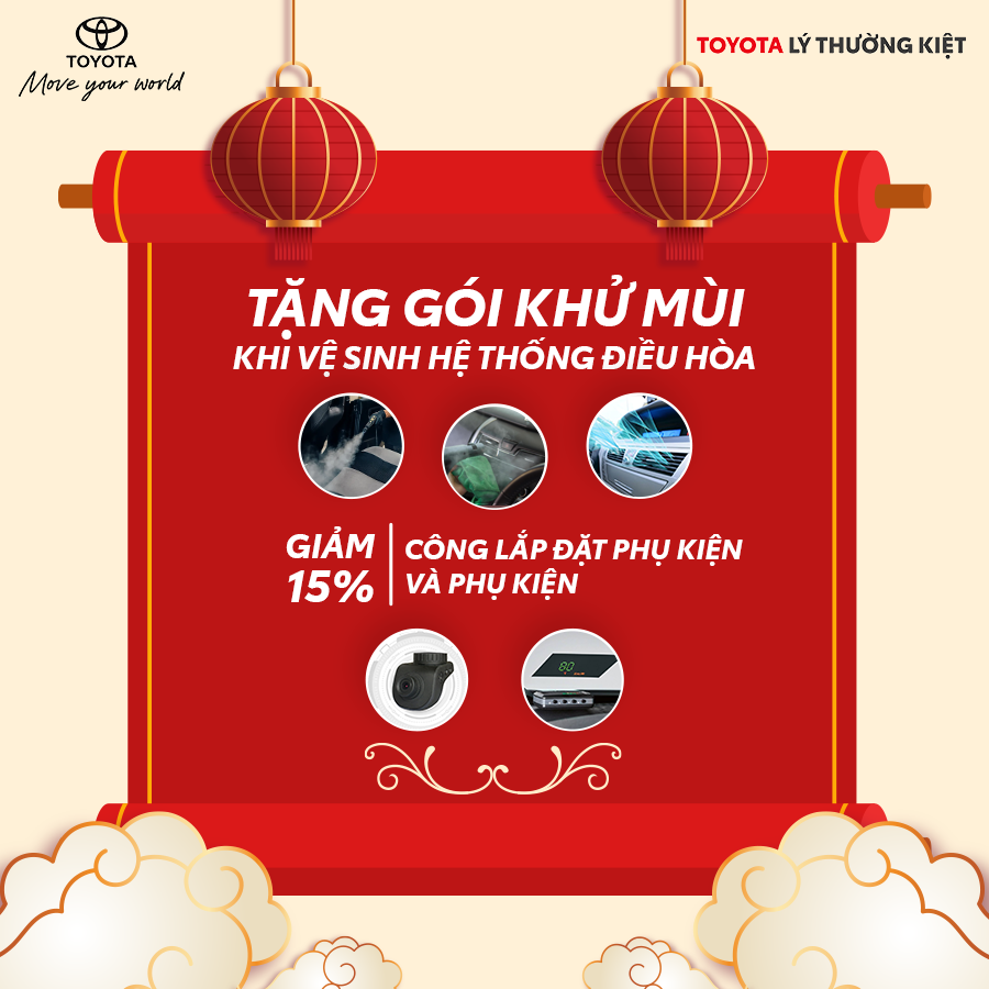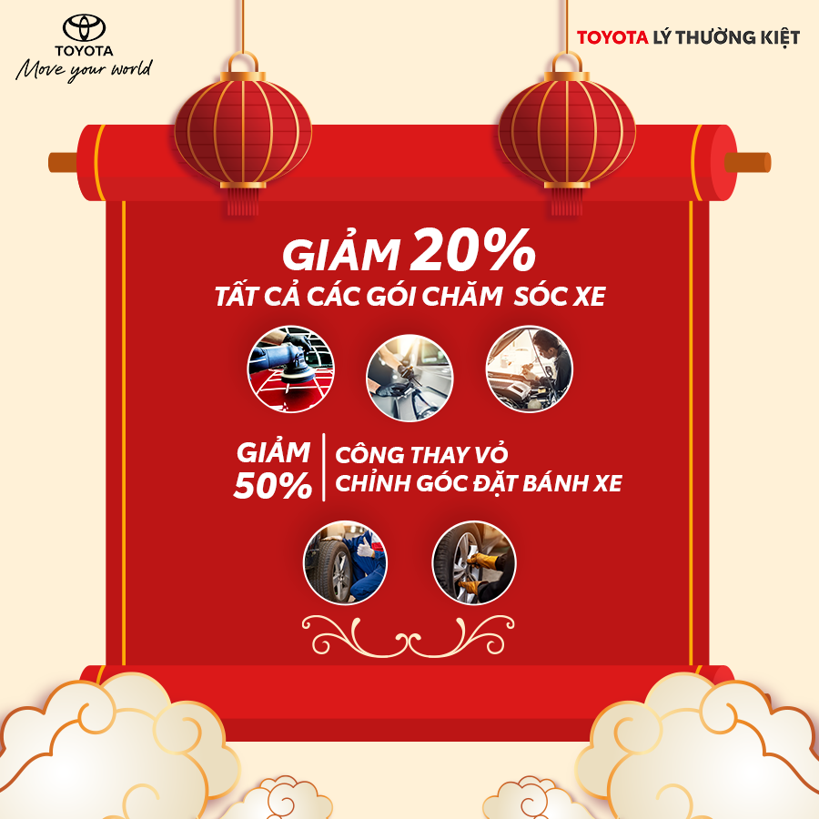 Toyota Lý Thường Kiệt giảm giá 15% công lắp đặt và phụ kiện chính hiệu trong Tết 2023 này.