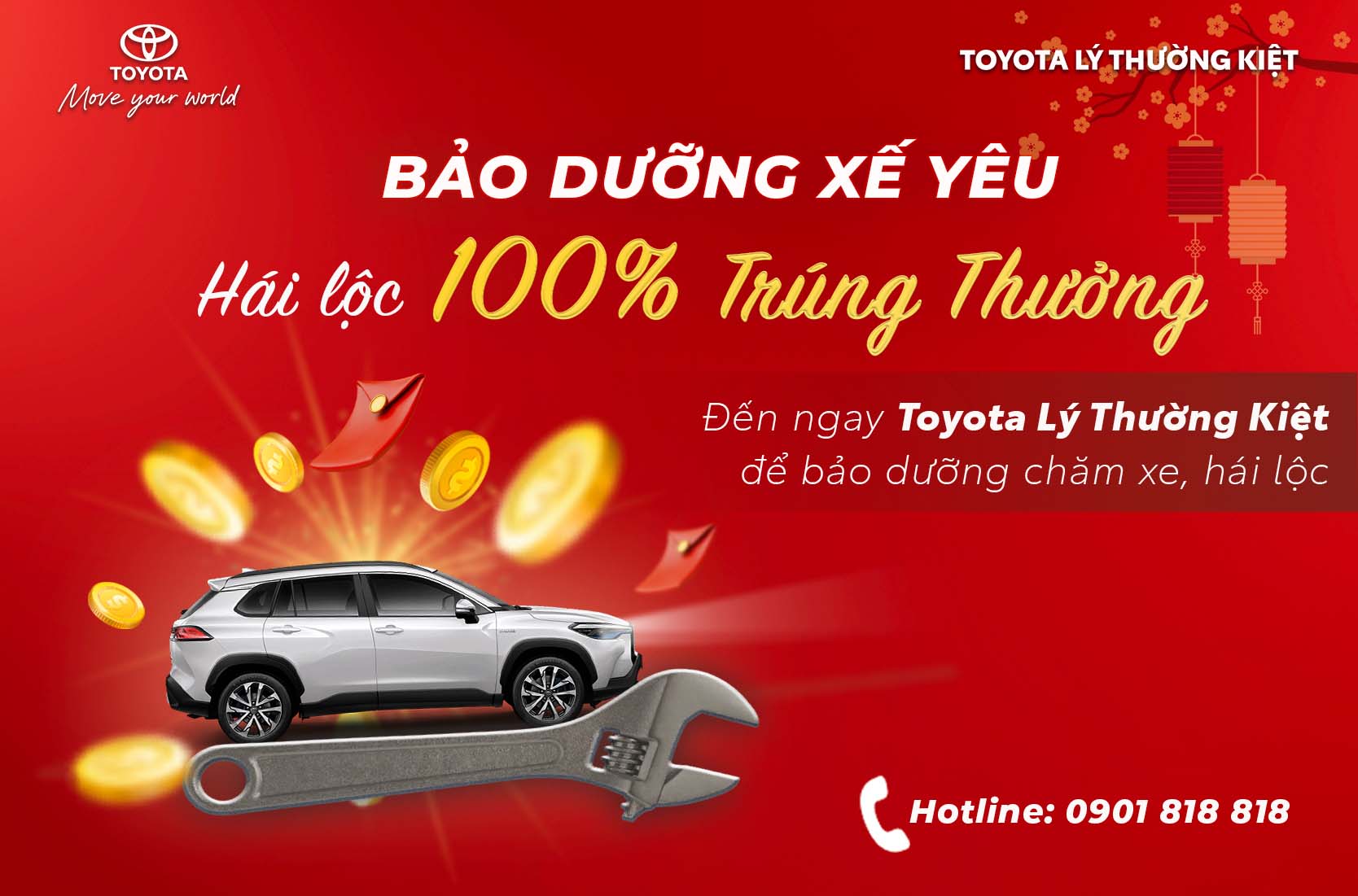 Xế yêu của bạn cần được chăm sóc sau những chuyến đi dài trong dịp Tết vừa qua. Đến ngay Toyota Lý Thường Kiệt để tham gia Hái Lộc Đầu Xuân 100% rinh quà hot nhé.
