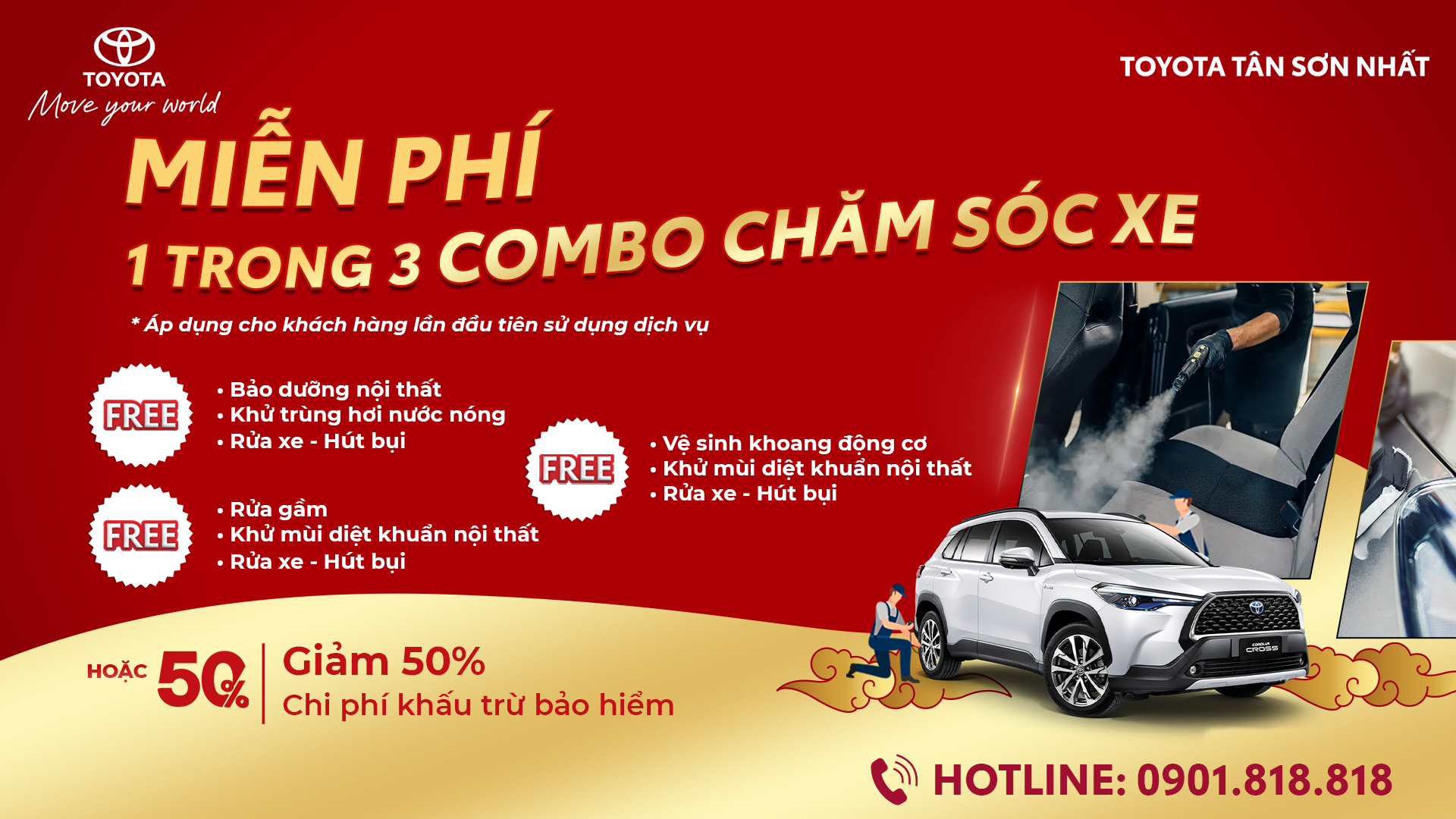 Điều kiện áp dụng: Khách hàng lần đầu đến làm dịch vụ tại Toyota Tân Sơn Nhất, hệ thống Toyota Lý Thường Kiệt.