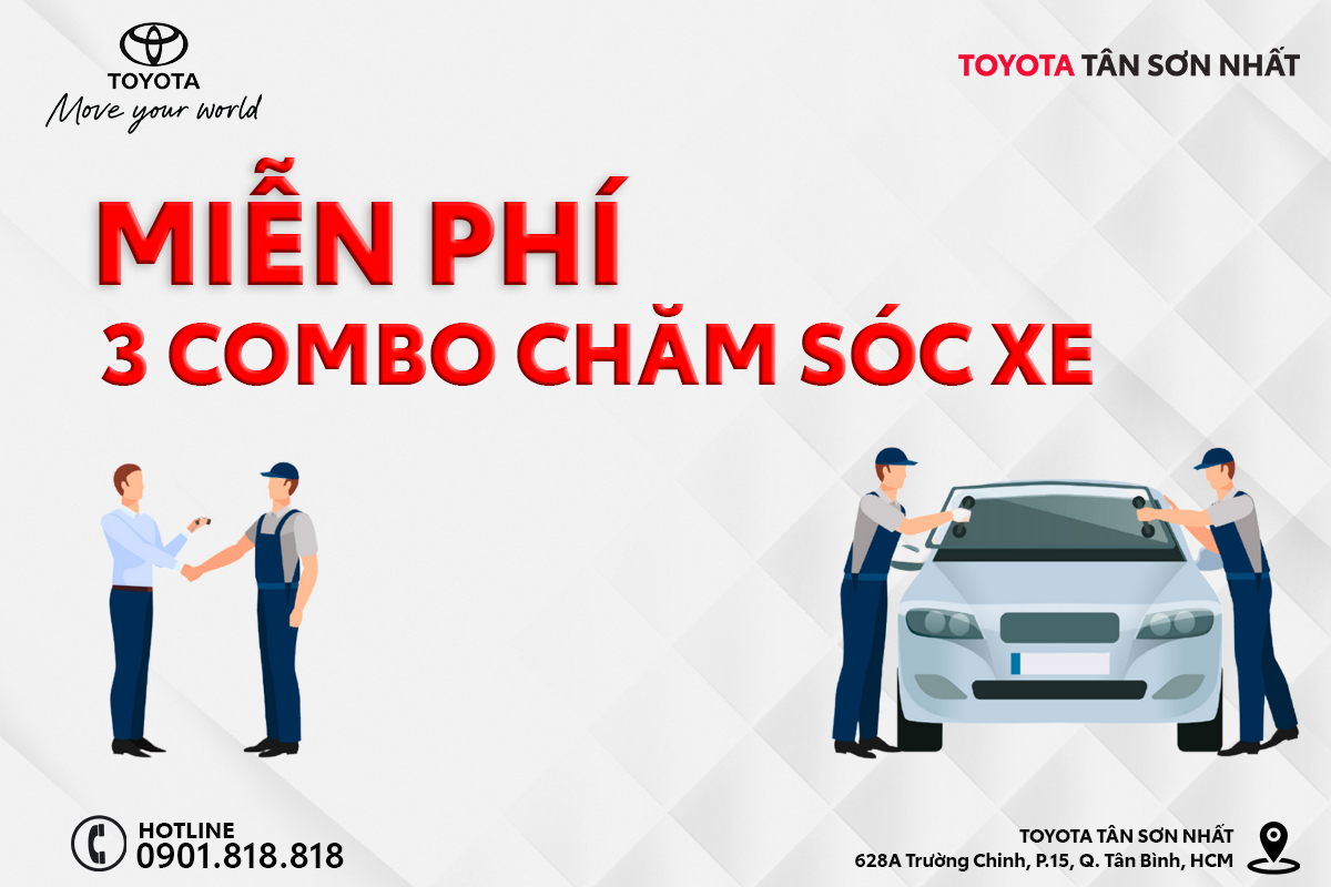 Miễn phí 1 trong 3 combo chăm sóc xe với khách hàng lần đầu tiên đến Toyota Tân Sơn Nhất làm dịch vụ như sau: