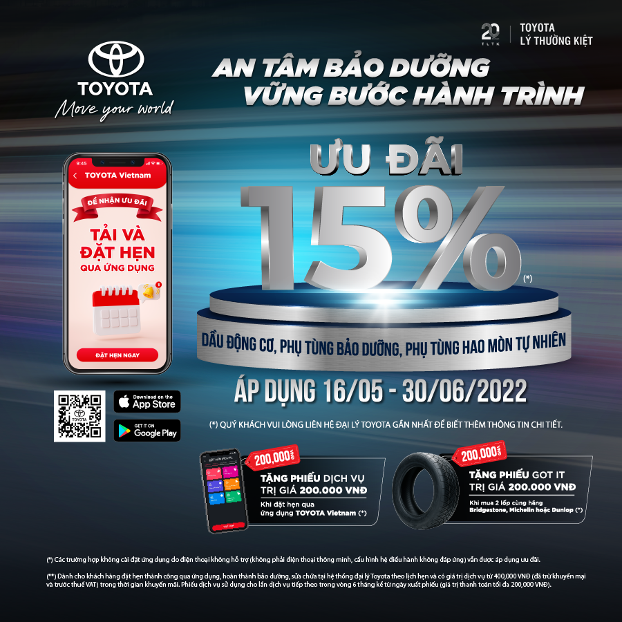 Thời hạn chương trình: 16/5 đến 30/6/2022 tại 4 chi nhánh thuộc hệ thống Toyota Lý Thường Kiệt.