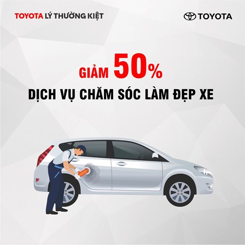 Giảm ngay 50% cho các dịch vụ chăm sóc, làm đẹp xe khi làm dịch vụ tại tất cả các chi nhánh thuộc hệ thống đại lý Toyota Lý Thường Kiệt gồm: vệ sinh nội thất, vệ sinh động cơ, đánh bóng