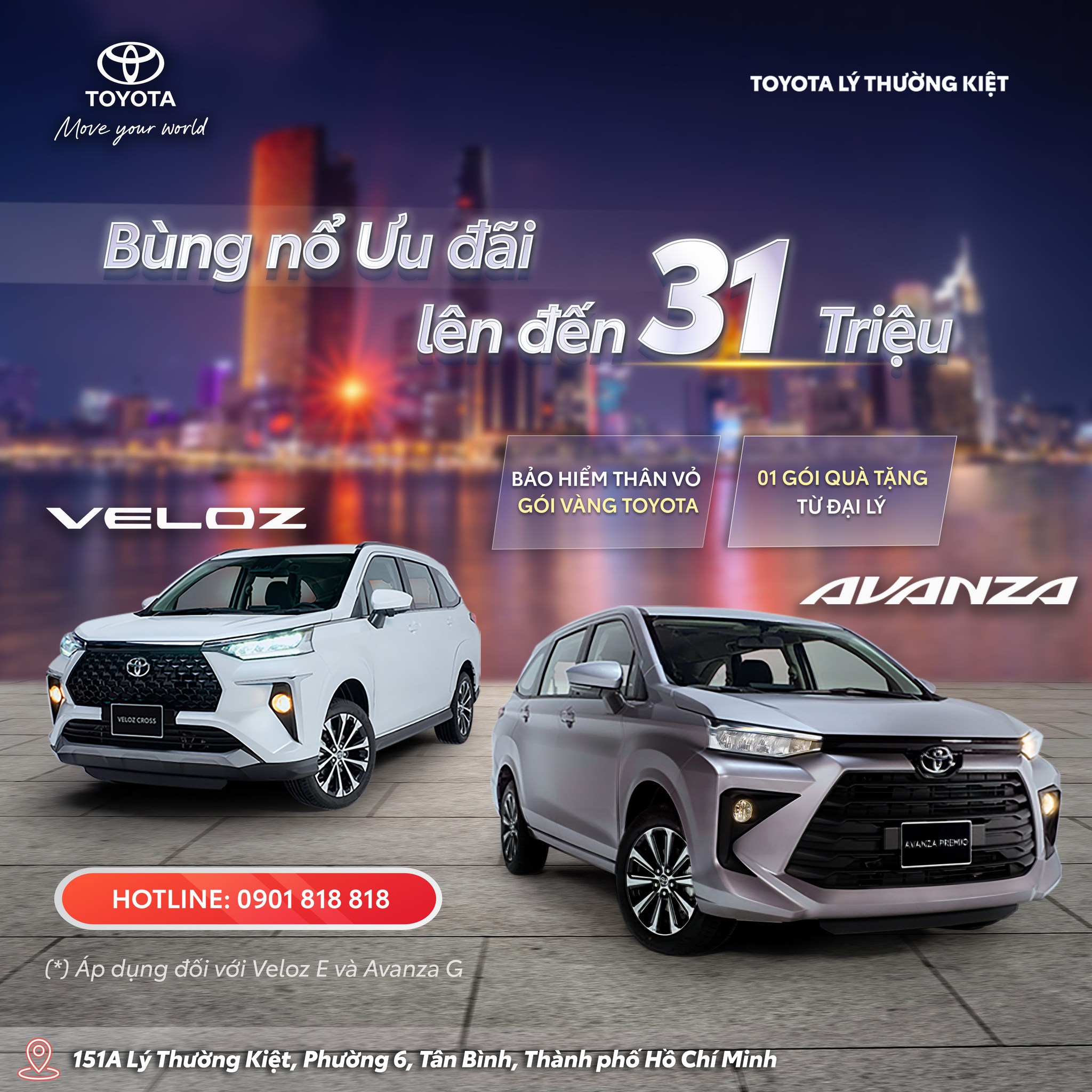 - TẶNG 1 gói bảo dưỡng chính hãng tại Toyota Toyota Lý Thường Kiệt, tha hồ bảo dưỡng, chăm sóc xe tại đại lý với đội ngũ Kỹ Thuật Viên chuyên nghiệp