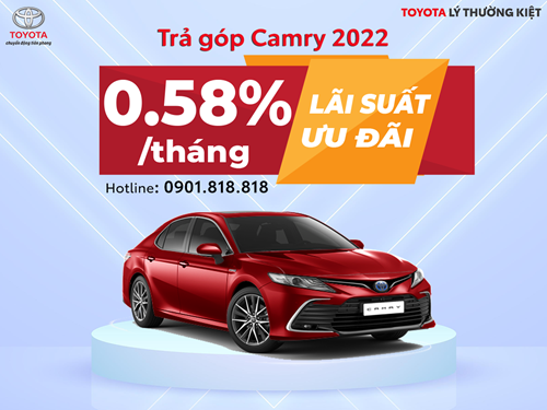Trả trước 438 triệu đồng nhận xe Camry 2022 (đã bao gồm tất cả chi phí). Lãi suất ưu đãi khi đặt xe trong tháng 1 0.58%/tháng từ Toyota Lý Thường Kiệt.
