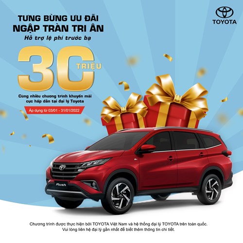 Ưu đãi thuế trước bạ 30 triệu đồng cùng nhiều quà tặng hấp dẫn từ Toyota Lý Thường Kiệt.