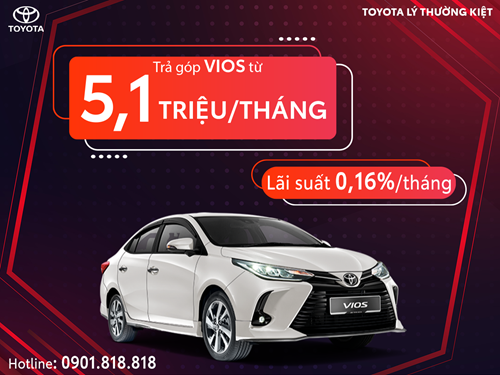 Trả góp chỉ từ 5.1 triệu đồng/tháng, lãi suất ưu đãi 0.16%/tháng từ Toyota Lý Thường Kiệt.