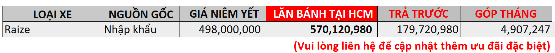 Bảng giá Toyota Raize tại Toyota Lý Thường Kiệt: