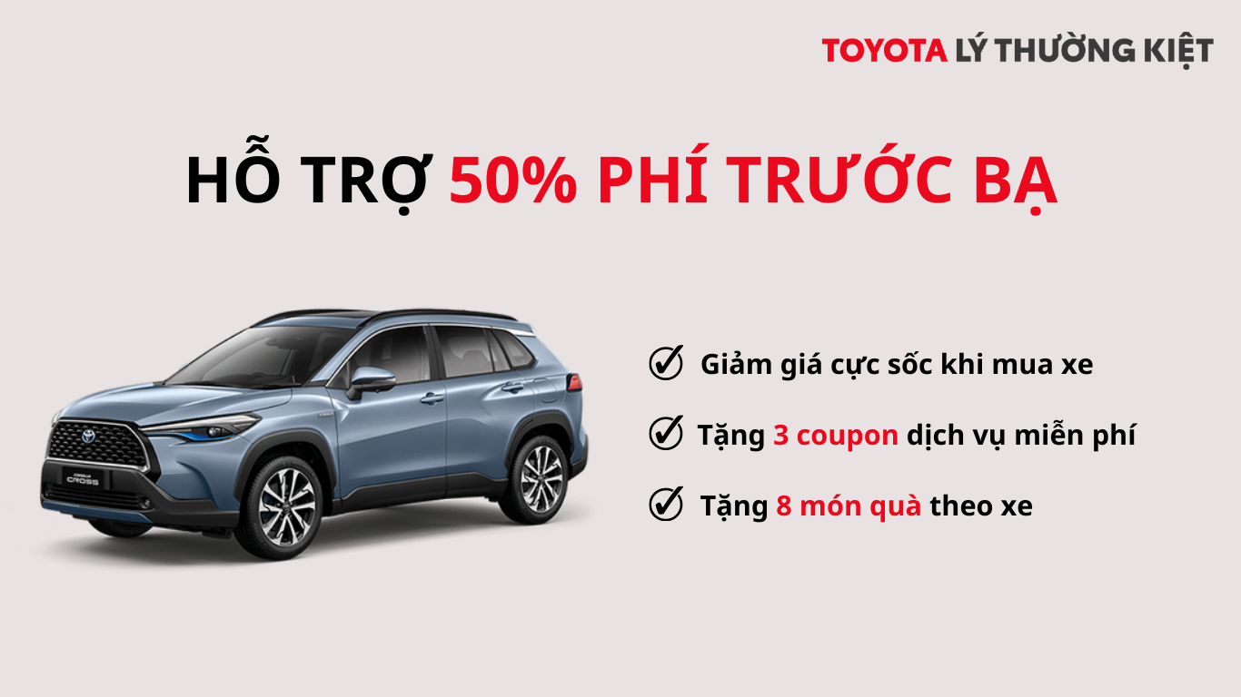 Corolla Cross là mẫu C-SUV ăn khách nhất phân khúc và luôn nằm trong top 10 xe bán chạy nhất tại Việt Nam. Ưu đãi chỉ có trong tháng sinh nhật, hỗ trợ ngay 50% phí trước bạ và giảm tiền mặt lên đến 80 triệu đồng.