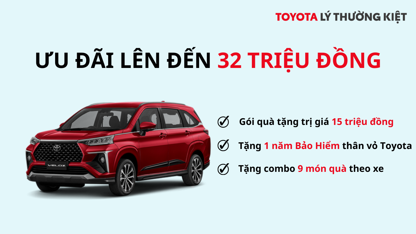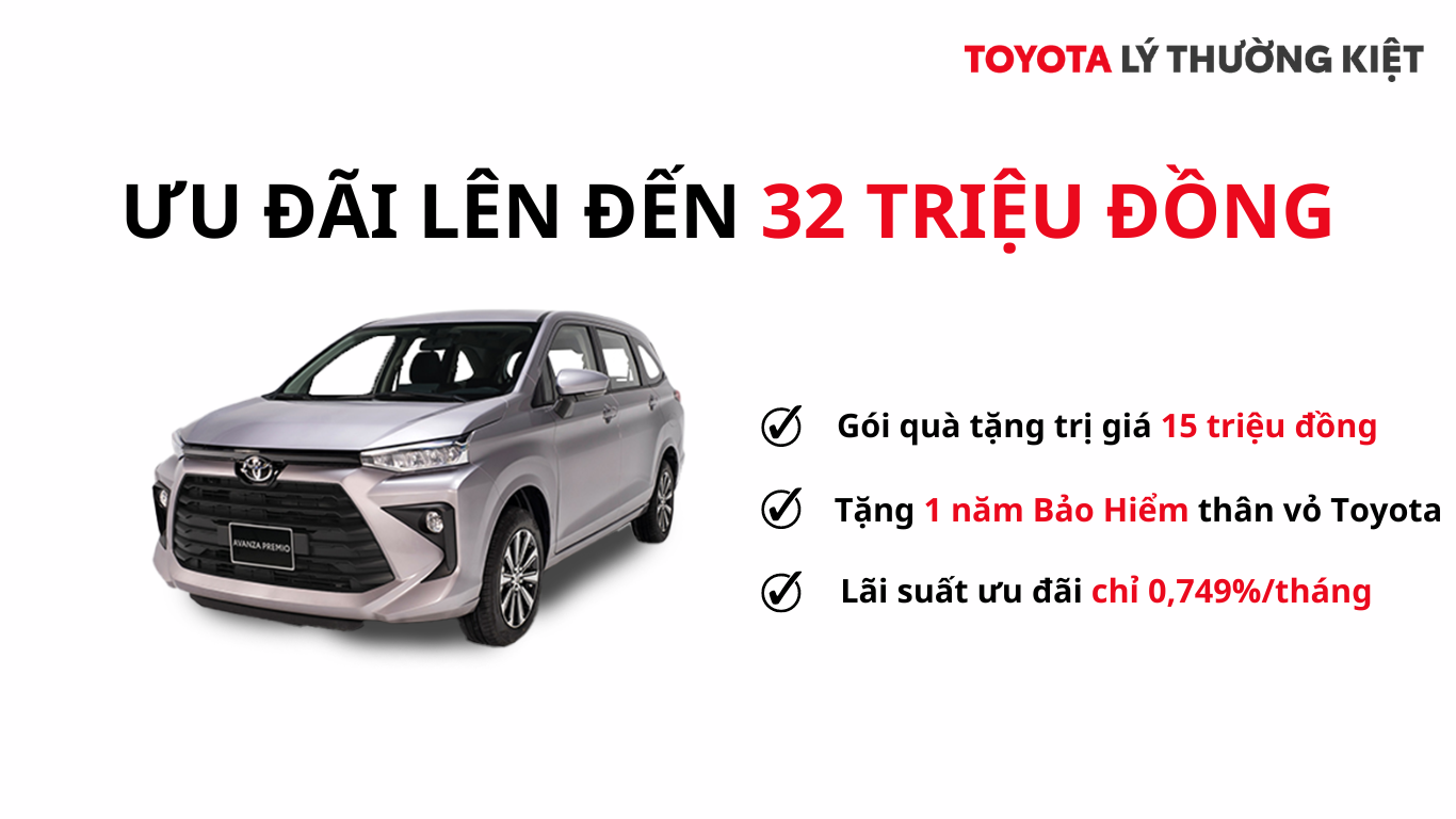 Đón tuổi 21 cùng Toyota Lý Thường Kiệt, nhận ngay gói khuyến mãi trị giá 32 triệu đồng bao gồm: gói quà tặng trị giá 15 triệu đồng từ đại lý và 1 năm bảo hiểm thân vỏ chính hãng Toyota (gói Vàng).