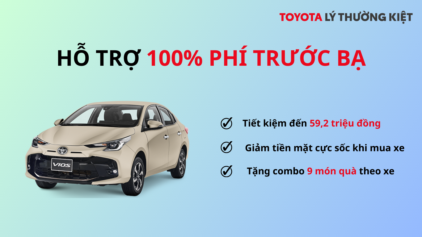 Ngoài ra nhân dịp kỷ niệm 21 năm thành lập công ty, Toyota Lý Thường Kiệt dành tặng tất cả khách hàng ký hợp đồng trong tháng 6 ưu đãi giảm giá tiền mặt lên đến 30 triệu đồng. Vì vậy khi mua xe Toyota Vios trong tháng 6 này, bạn có thể nhận mức ưu đãi lên đến gần 90 triệu đồng.