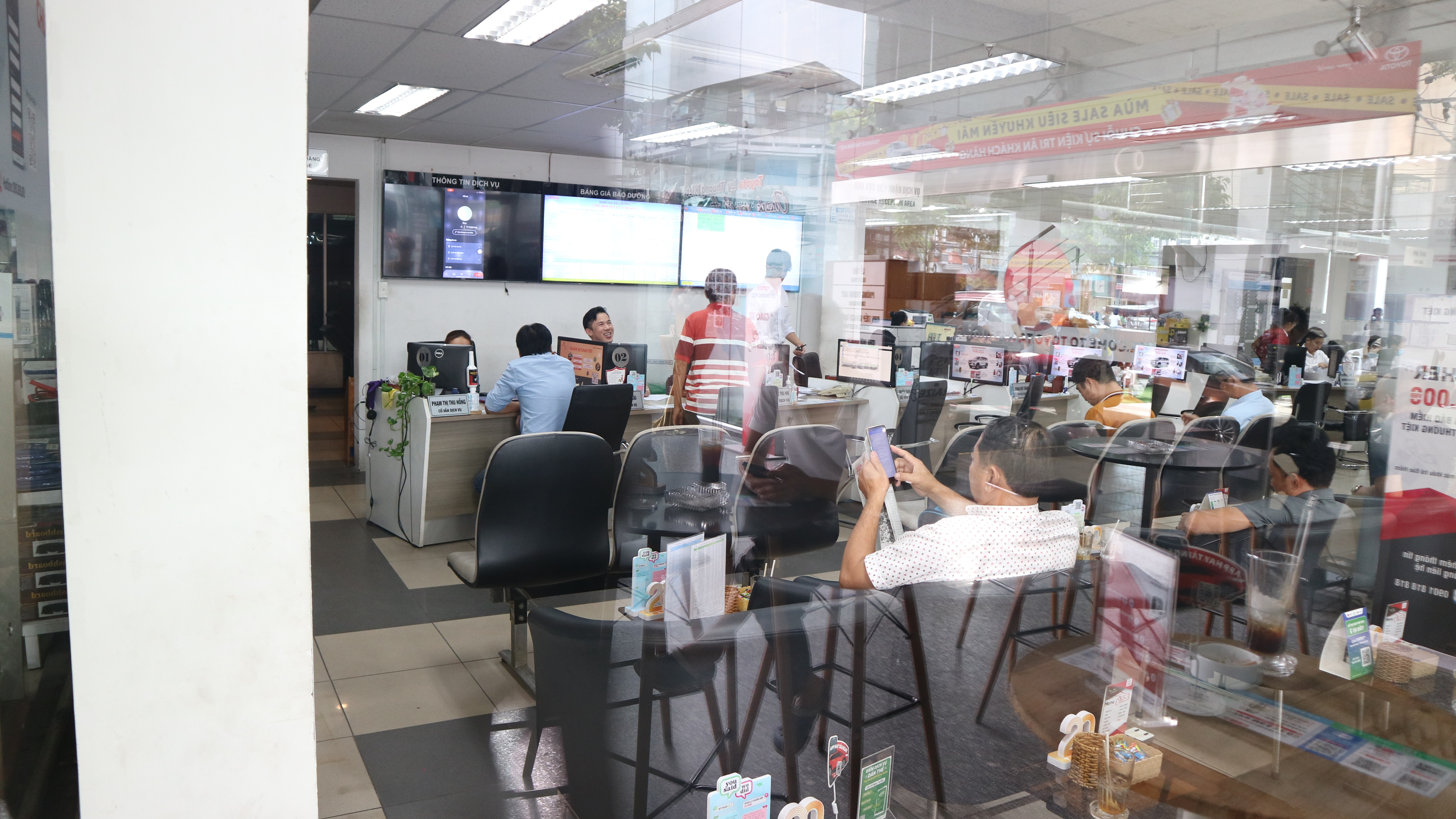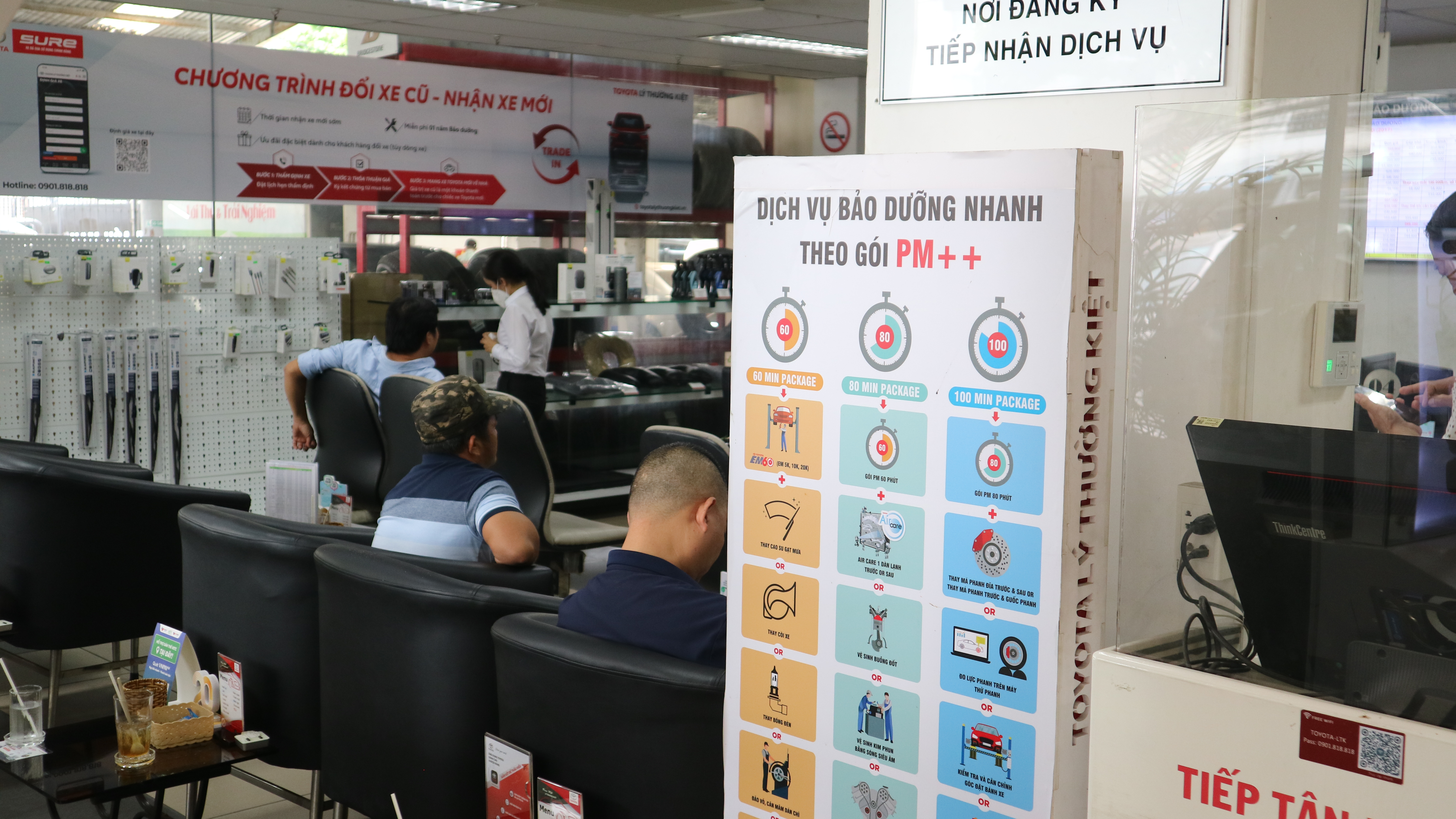 Hệ thống dịch của hãng được xây dựng và hoạt động theo hệ thống lớn, có tính chuyên môn hoá và đội ngũ thâm niên cao, chất lượng. Nên các khoản chi phí vận hành, nhân lực, thiết bị máy móc… cao hơn các garage ngoài. Tuy nhiên, khi đến bảo dưỡng hoặc làm dịch vụ tại đại lý Toyota chính hãng, quý khách hàng luôn nhận được sự quan tâm ngay từ khi ở bên ngoài cổng, từ nhân viên bảo vệ, lễ tân đến cố vấn dịch vụ và kỹ thuật thực hiện dịch vụ. Thêm vào đó, quý khách luôn được phục vụ nước uống MIỄN PHÍ, được sử dụng phòng chờ VIP, các tiện ích như máy tính kết nối Internet có sẵn, báo mới mỗi ngày, tạp chí, TV giải trí, ghế massage. Tất cả đều được MIỄN PHÍ để phục vụ khách hàng làm dịch vụ tốt nhất!