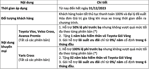 Nhằm mang đến cơ hội sở hữu xe dễ dàng cho khách hàng trong mùa mua sắm cuối năm 2023, Toyota và hệ thống đại lý trên toàn quốc tiếp tục triển khai loạt chương trình khuyến mại hấp dẫn cho các mẫu xe Toyota trong tháng 12: